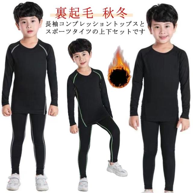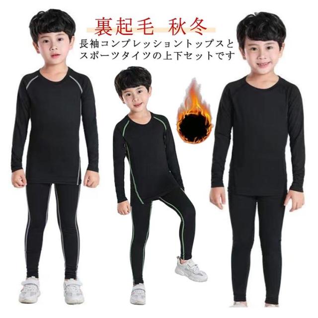 長袖 キッズ服 アンダーウェア 運動着 コンプレッションウェア セットアップ 男の子 女の子 防寒 キッズ服 ストレッチ 裏起毛 上下セット スポーツ インナーシャツ 吸汗速乾 サッカー 野球 ランニング 秋冬 小学生 幼稚園