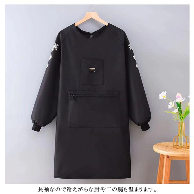 | ロング丈&ミドル丈!裏地がフリース素材のあったか長袖エプロン。 表地は撥水加工が施されているので水仕事にも便利です。 キッチンワークやガーデニング、畑仕事などに◎ また、袖口はリブで絞られているため、腕まくりしやすく、邪魔になりません。 前面にポケットが付いていて、スマホやハンカチ、メモなどの小物を収納するのに便利です。 長袖なので冷えがちな肘や二の腕も温まります。 ゆったりとした着心地なので重ね着しても動きやすく、スッポリかぶって着用できます。ヒップも隠れる着丈で、冷え対策だけでなく体型カバーにも! ルームウエア感覚で着られる暖かいエプロンです。 いくつあっても便利なエプロンは贈り物にもピッタリです♪ | |