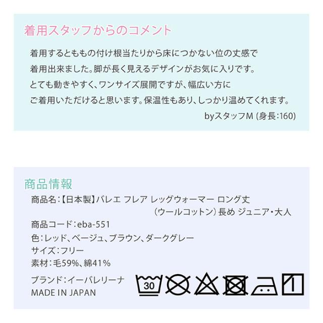 商品名:【日本製】バレエ フレア レッグウォーマー ロング丈(ウールコットン)長め ジュニア・大人