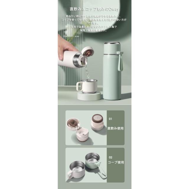 水筒 直飲み コップ飲み 2way 保温 保冷 450ml 550ml 大容量 茶こし付き ステンレス製ボトル マグボトル 水筒 広口 軽量 持ち運び 運動 オフィス アウトドア