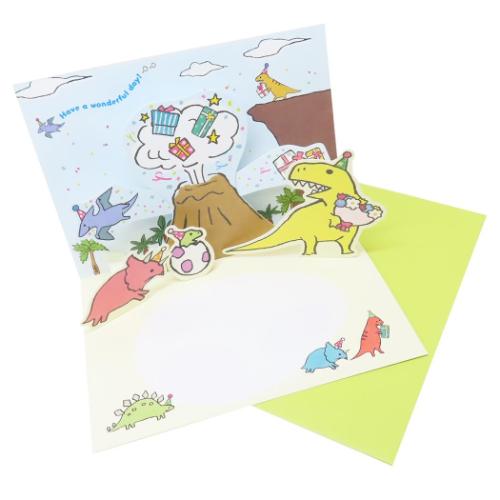「グリーティングカード 恐竜POP UPカード バースデー お祝い 封筒付き グッズ メール便可」