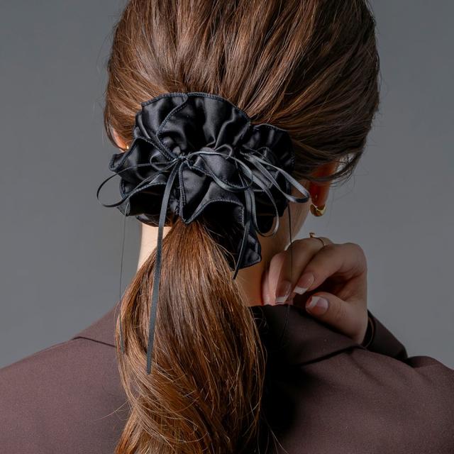 【ゆうパケットOK】 シュシュ サテン調 立体的 リボンコード ロング ボリューム 大きめ 存在感 光沢 ヘアアクセサリー ヘアゴム 髪留め まとめ髪 アレンジ 大人 ブラック outlet