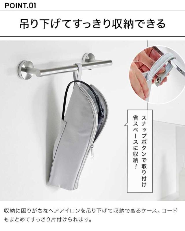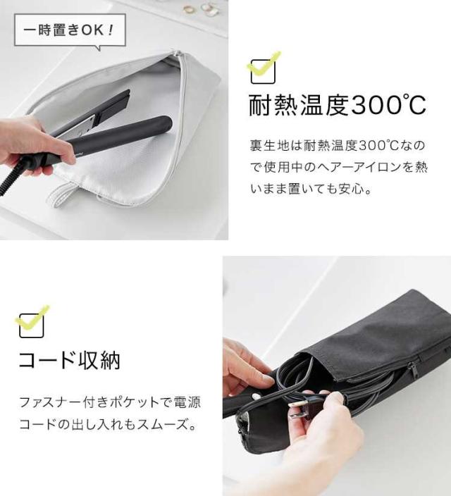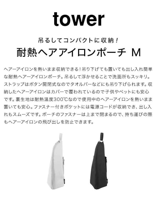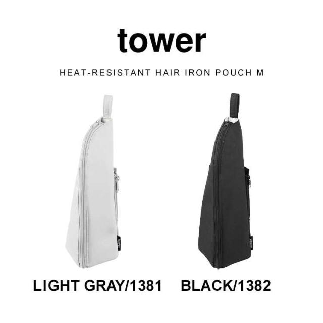 山崎実業 耐熱ヘアーアイロンポーチ タワー M 1381 1382 tower ヘアアイロンケース ポーチ カバー 持ち運び 旅行 スリム 収納 ミニ ファスナー 入れ物 コンパクト 熱いまま コテ ヘアアイロンホルダー トラベル 吊り下げ 引っ掛け 浮かせる シンプル 置き 携帯 コード収納