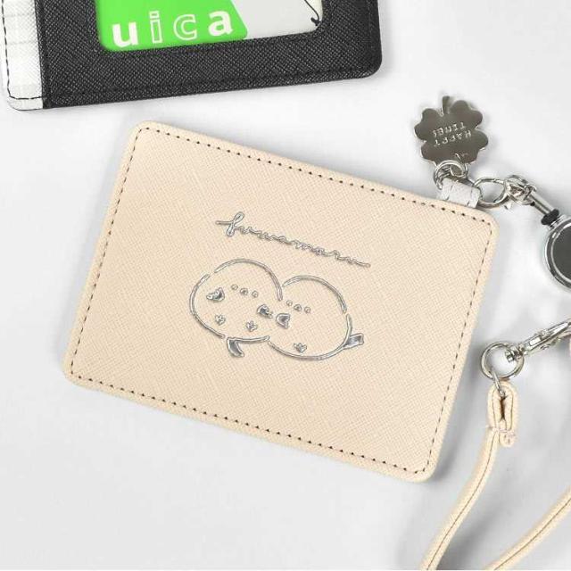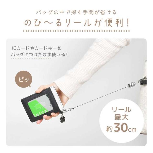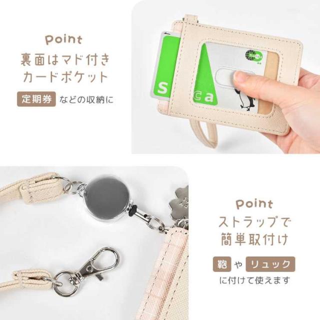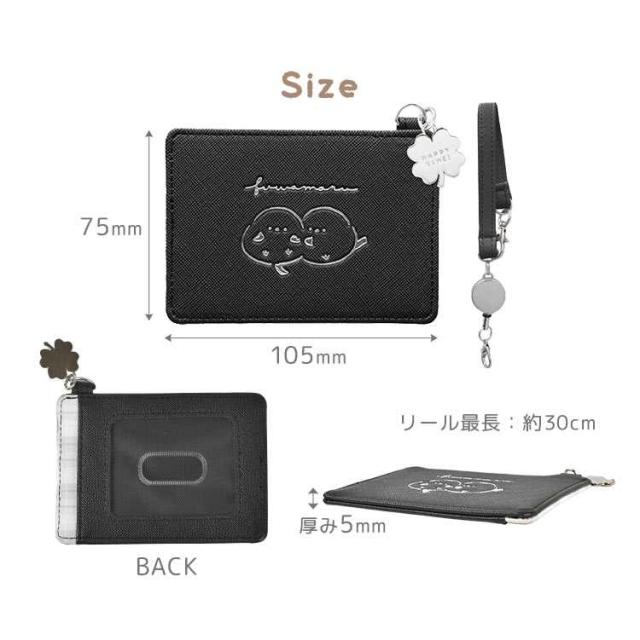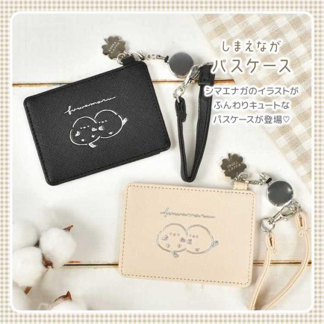 パスケース 定期入れ リール付き シマエナガ かわいい キャラクター おしゃれ シンプル 伸びる ストラップ 落ちない 子供 女の子 窓付き 薄型 女子 小学生 中学生 高校生 定期券入れ ICカード入れ 子ども 女性 パス入れ 癒し イラスト 鳥 グッズ 通勤 通学 ベージュ ブラック