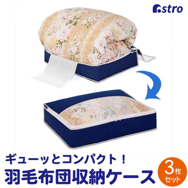 商品名:羽毛布団を小さく収納するケース 紺 3枚組