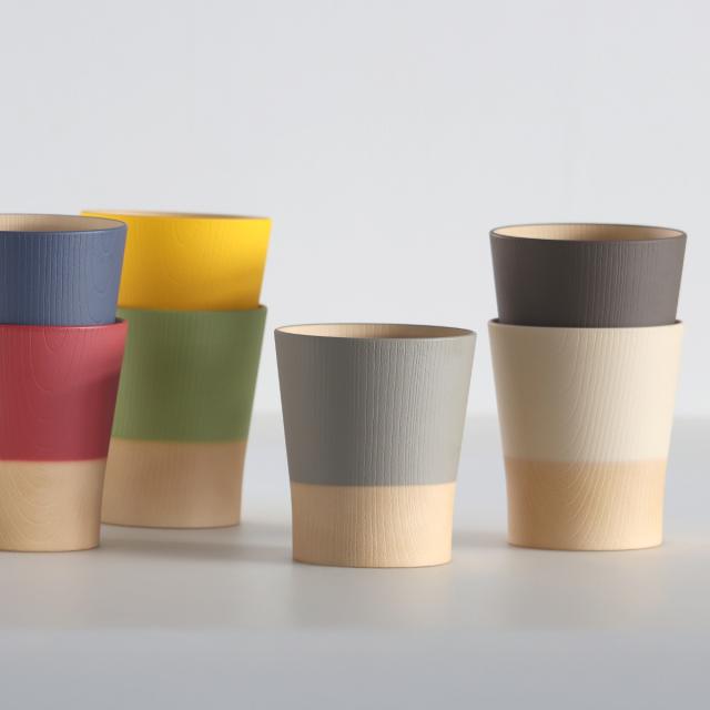 食卓をやさしく彩る、日本の伝統色を使用した木目調のコップです。和でも洋でも合わせやすく、普段使いから来客時にでも使えるデザインです。
