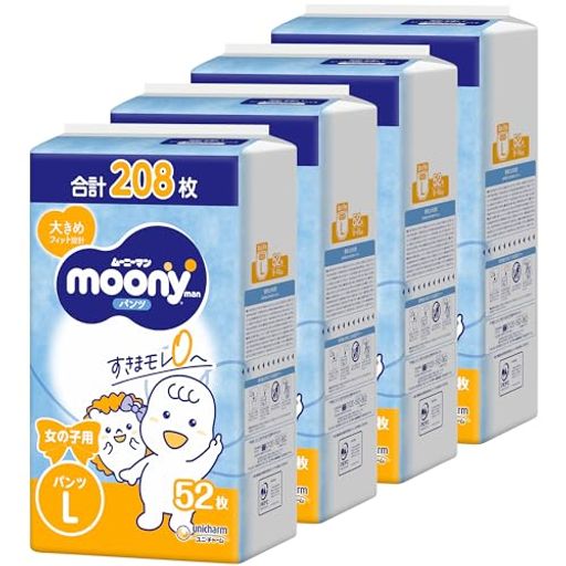 【パンツ Lサイズ】ムーニーマン 女の子 オムツ [ケース品] 白 (9~14KG)208枚(52枚×4)
