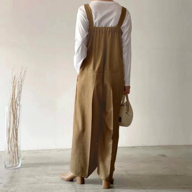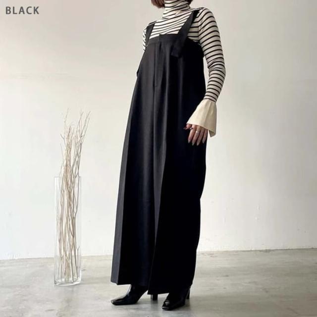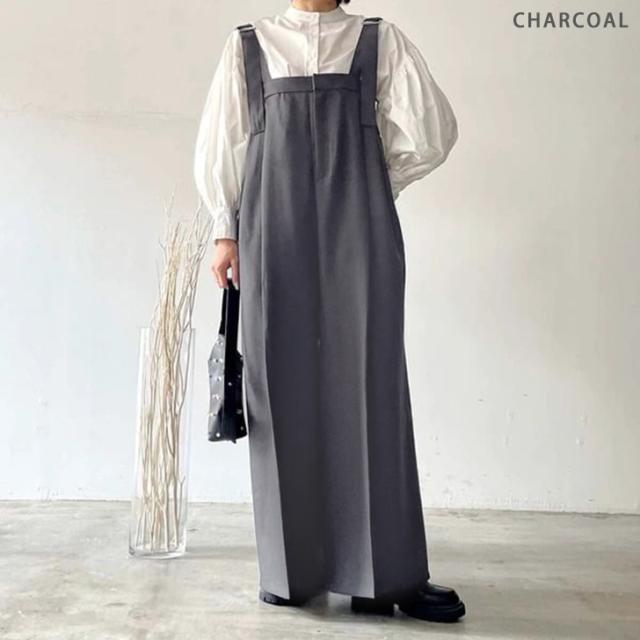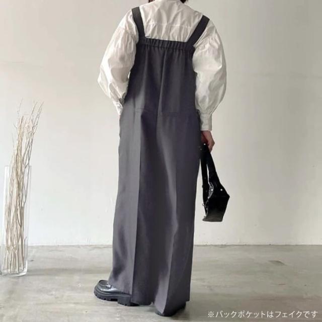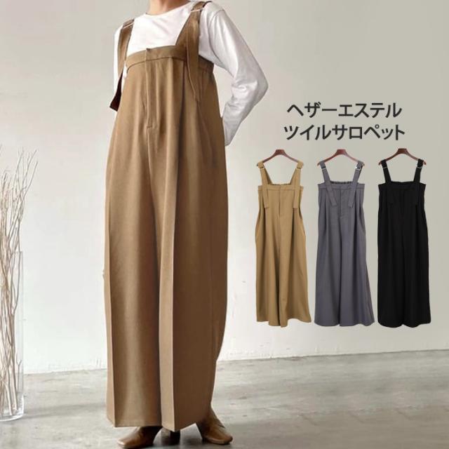 新作 センタープレスヘザーエステルツイルワイドサロペット レディース 秋 冬 大きいサイズ オールインワン オーバーオール ロング丈 マキシ丈 ワイドパンツ カジュアル きれいめ 体型カバー 重ね着 レイヤード