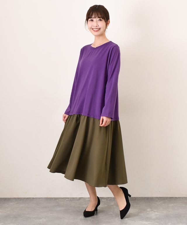 ●コーデを考えずサラッと1枚で着られる異素材ドッキングワンピース