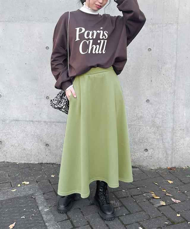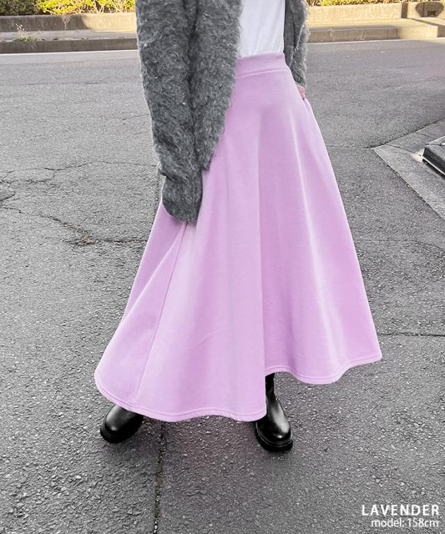 新作 ポケット付き裏起毛スウェットロングフレアスカート レディース ボトムス ロングスカート ロング丈 ミモレ丈 秋 冬 春 無地 シンプル カジュアル Aライン スエット お出かけ 通勤 通学 ウエストゴム 大人