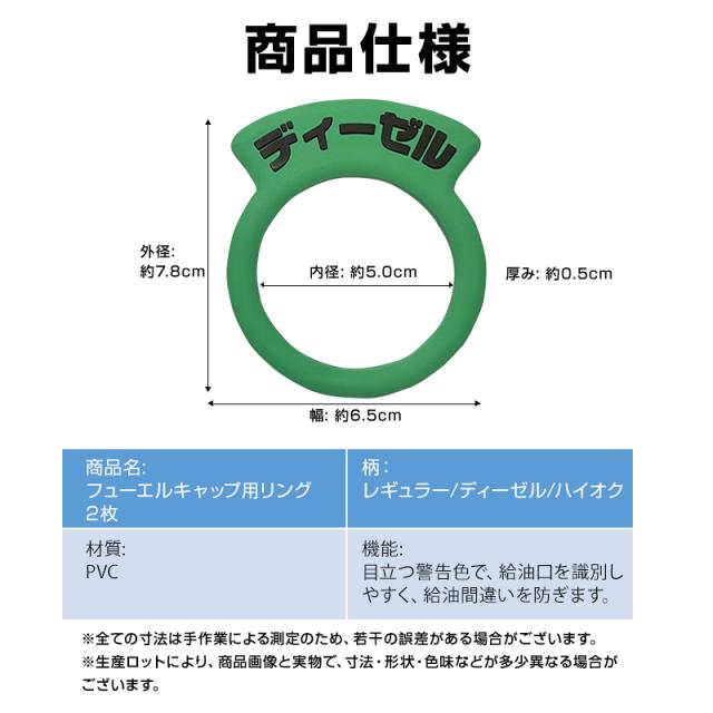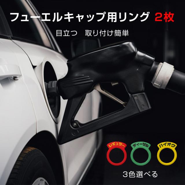 車 フューエルキャップ用リング 2枚 給油口 油種 標識 給油ミス防止 汎用 簡単 レギュラー ディーゼル ハイオク 給油 自動車 セルフ ガソリン キャップ PVC タグ