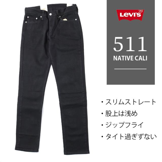 Levi's リーバイス 511 スリムフィット ブラック NATIVE CALI 045111907 デニム パンツ ズボン ジーンズ ストレート スキニー スリム ロールアップ 細身 シルエット ジップフライ ストレッチ