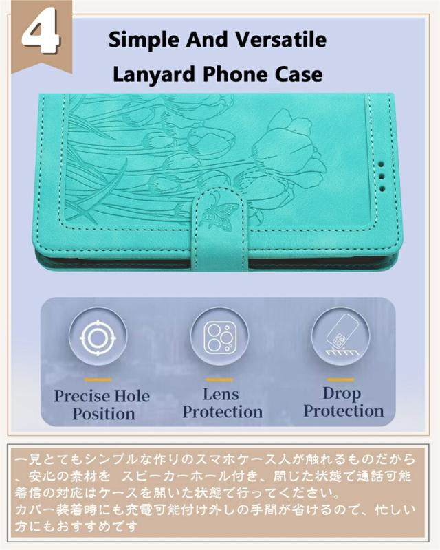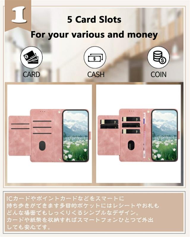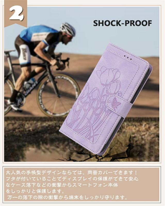 1、手帳型▽ 手帳型のデザインでボタンを包んで、埃を防ぎます。 また、柔軟性を持つTPUを使用することでボタンも押しやすいです。 2、滑り止め、指紋防止、傷防止▽ ケースの表面に特殊な加工を施し、指紋が付きにくく傷にも強いです。 また滑り止め効果もあります。 3、精密な設計▽ 各ホール部分の正確な設計デザイン サイドボタンもピッタリ設計なのでホールやボタンを保護し、カバーが操作を妨げません。 4、カード収納▽ カバー裏面にカード収納があり、ICカードや名刺などを収納することが可能です。 5、マグネット式▽ マグネット式ベルト、開閉しやすく、他機能の使用を邪魔しません。 |