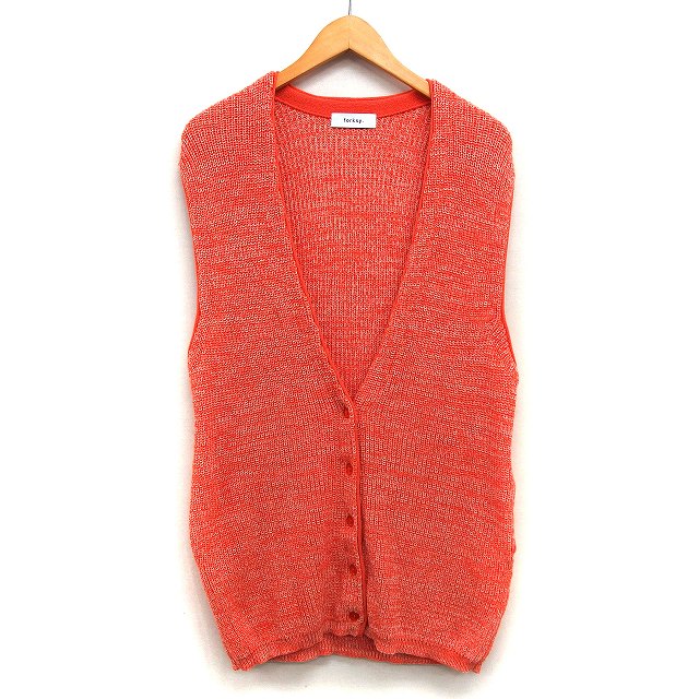【中古】フォルクシー forksy. ニット ベスト ビスチェ ロング 総柄 パイピング 切替リブ Vネック 綿混 F オレンジ