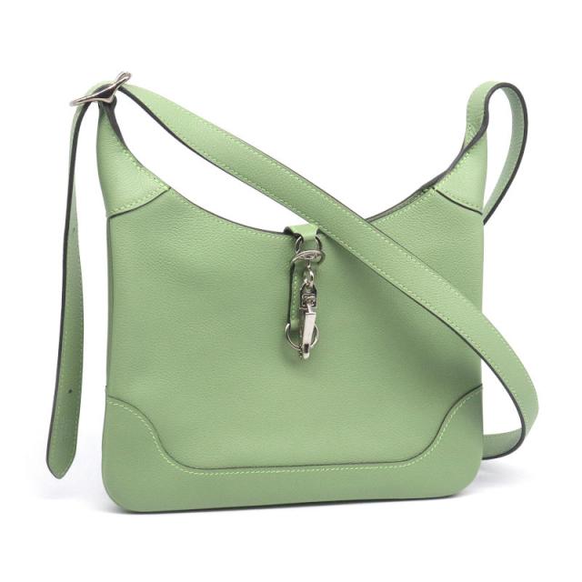 エルメス トリムデュオ24 Y刻印 2020年製 ヴェールクリケット エバーカラー レザー シルバー金具 ショルダーバッグ グリーン 中古 送料無料