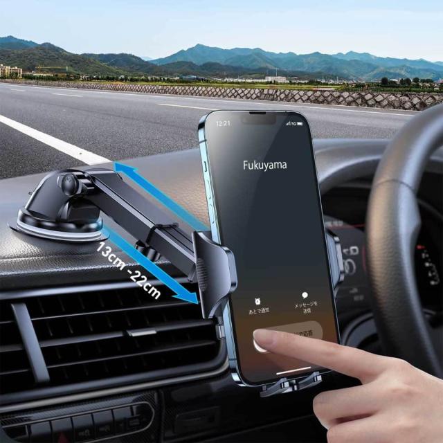 スマホホルダー 車載ホルダー 片手操作 伸縮ロングアーム 360°自由回転粘着ゲル吸盤 自由調節 伸縮アーム ワンタッチ 全車種対応 スマホスタンド 取り付け簡単 4-7インチ全機種対応 iPhone Xperia Galaxy Xiaomi DoCoMo au Softbank機種等対応
