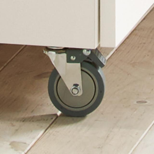 頑丈なキャスター。扉側の2個はストッパー付き。