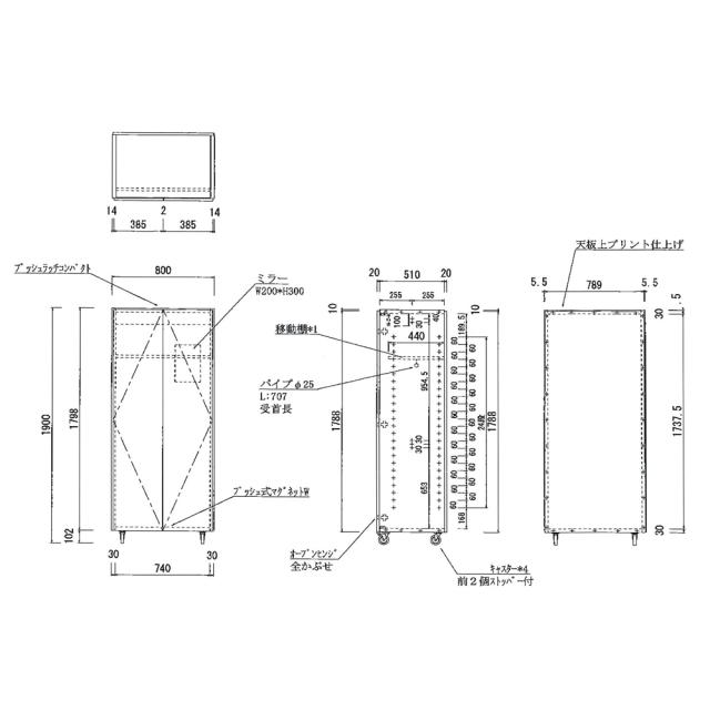 ■側面・天板・(ア)(ウ)前面…強化化粧合板、(イ)前面…ポリエステル化粧合板