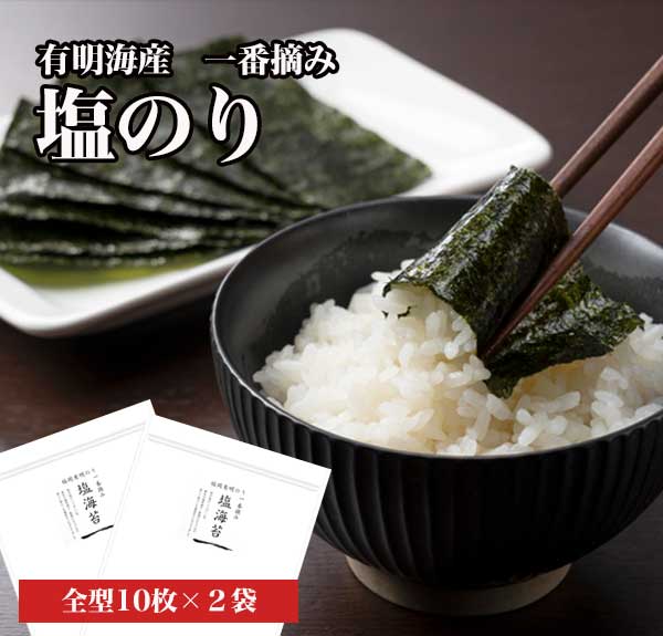 有明海産 一番摘み 極上 塩のり 全型20枚 10枚×2袋入 焼きのり 焼海苔 海苔 有明海産 メール便