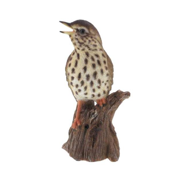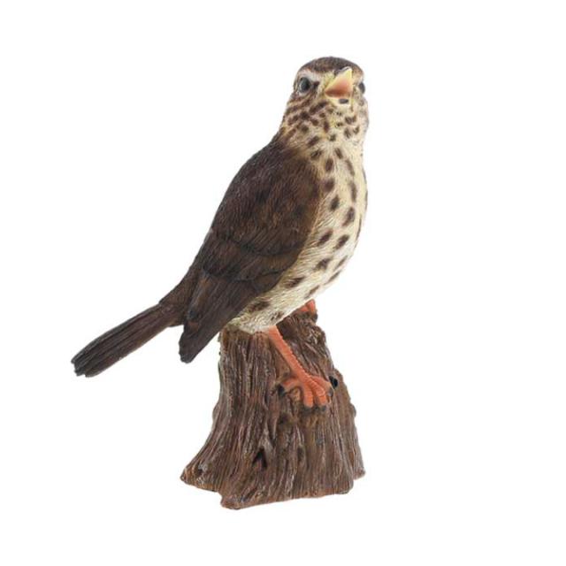 街中の公園で見かける野鳥ソングスラッシュのガーデンオーナメントです。細部までこだわったきれいな仕上げで、まるで生きているかのようなリアルな表情が特徴です。お庭やお部屋に飾れば、ペットのいるような暮らしを楽しめます。