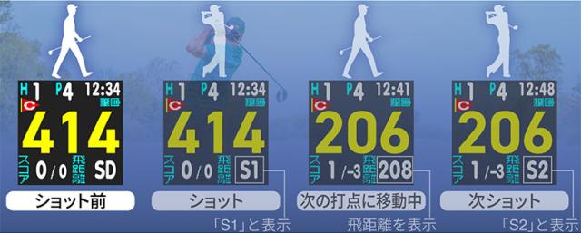 ショットとスコアを自動的に記録。飛距離は自動で測定。ラウンド後、スマートフォンアプリ「GREENON」にデータを転送すれば、コースレイアウト上にショット位置と飛距離を表示できます。