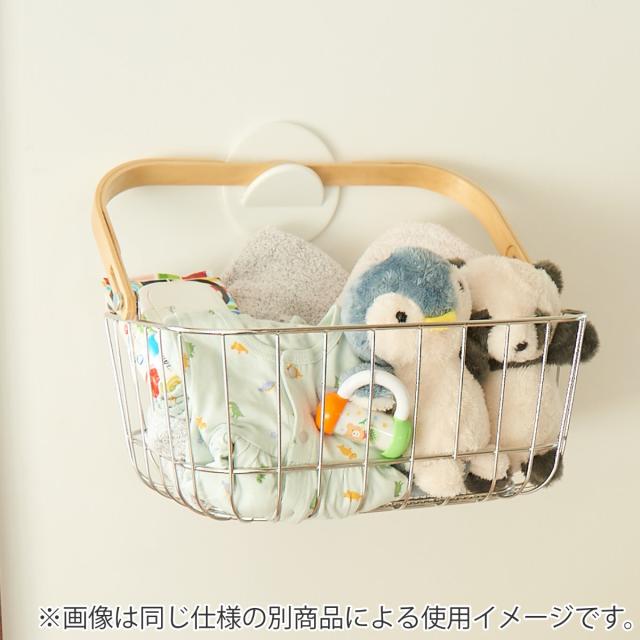 別売りのサークルフックを取付けることで、壁に収納することも可能です。壁に収納することで、バスケットを置くための棚が不要なのもうれしいポイントです。