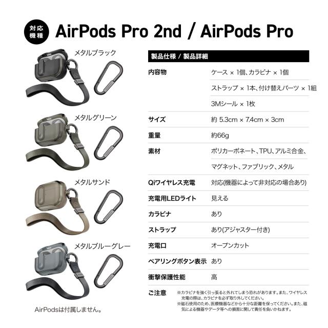 AirPods Pro2 AirPods Pro ケース 耐衝撃 落下防止 カラビナ ストラップ 付 カバー シンプル ワイヤレス充電 MagSafe対応 [ エアーポッズ プロ 2 第一世代 第2世代 対応 ] MagEasy Odyssey with Wrist Strap