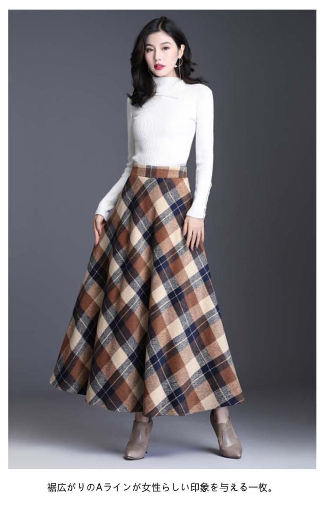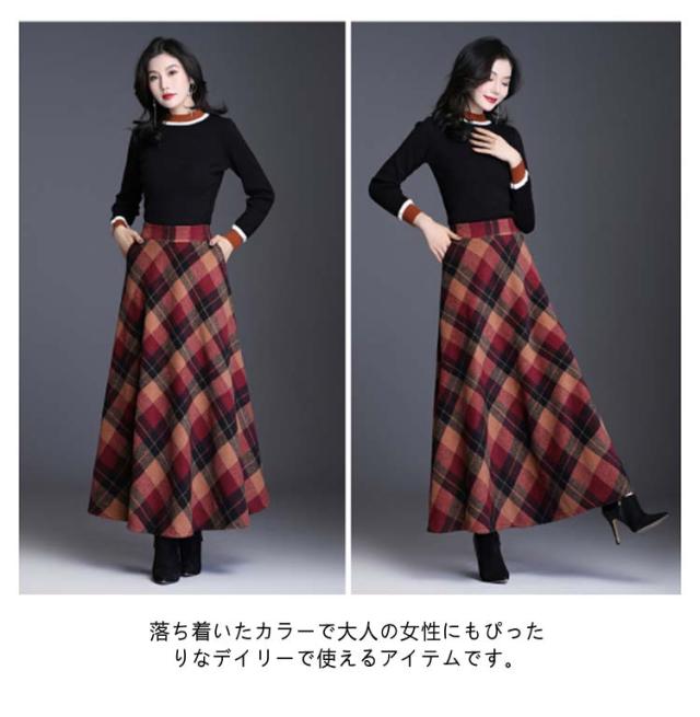ロングスカート フレアスカート 30代 マキシスカート 40代 チェック柄 スカート タータンチェック マキシ丈 ウール調 フレアスカート 秋冬 着痩せ お洒落 厚手 暖い