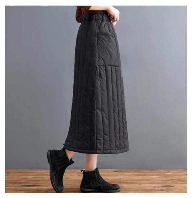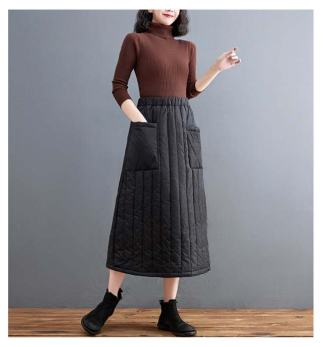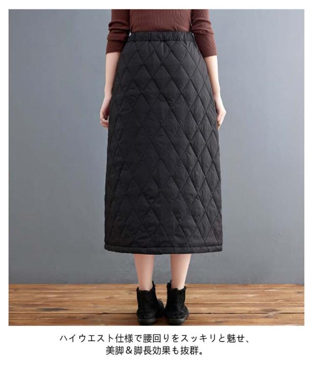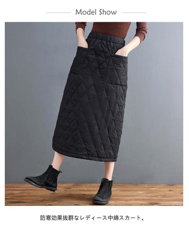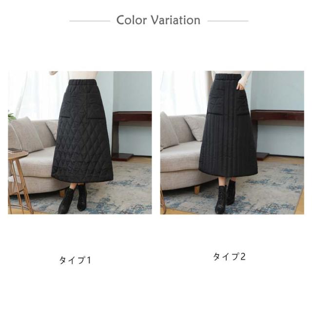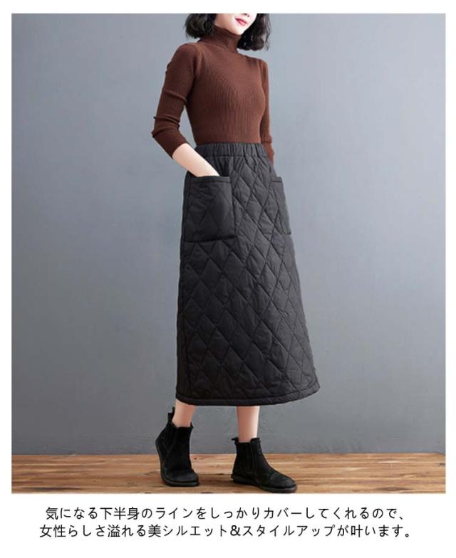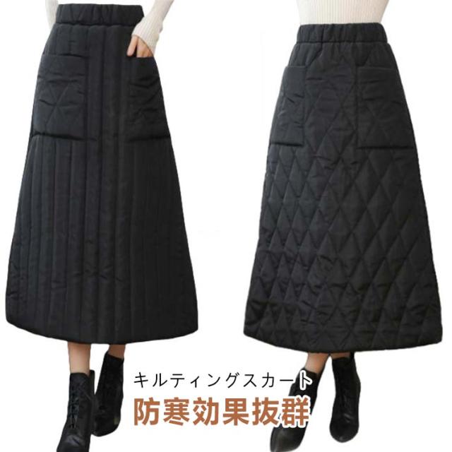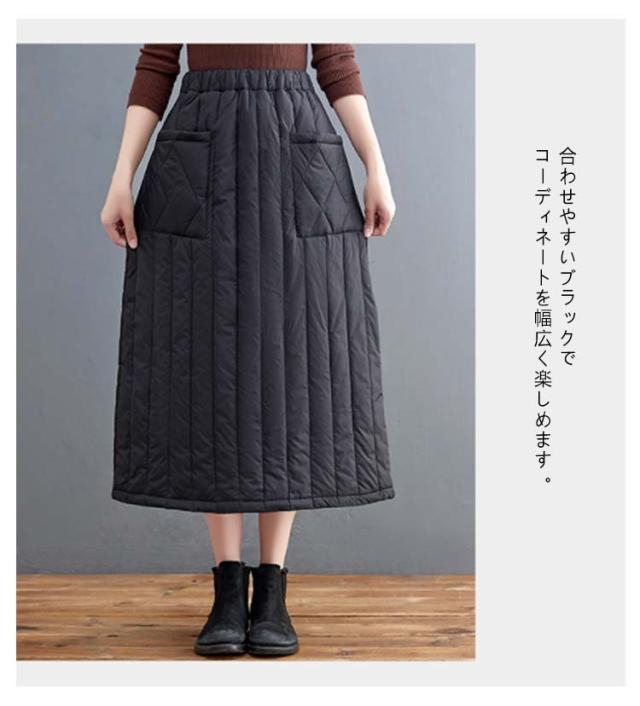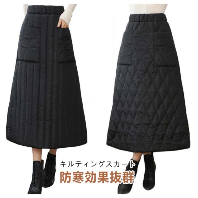 ゆったり キルティングスカート スカート 暖かい 大きいサイズ Aライン 中綿入り あったか 防寒 中綿スカート ポケット付き ルームウェア 普段着 ウエストゴム キルティングスカート 30代 40代
