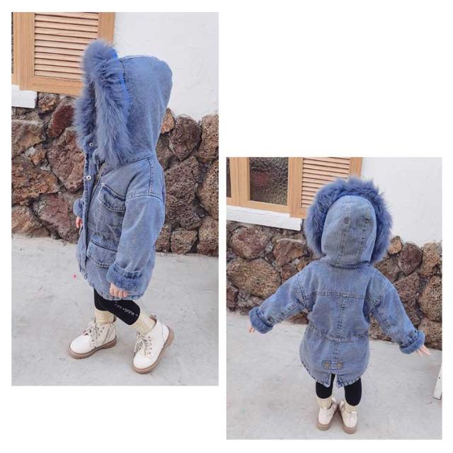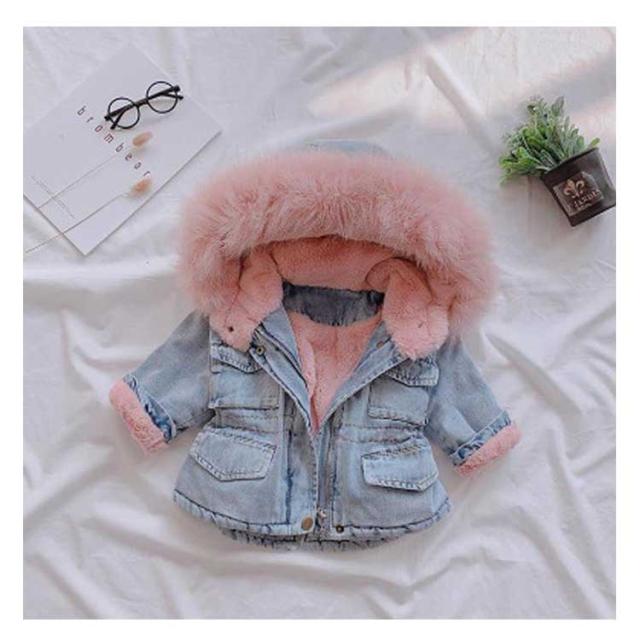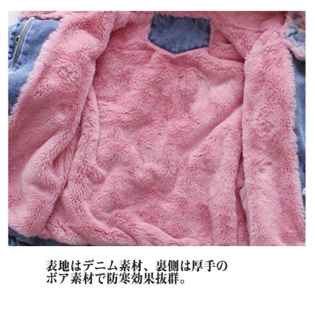 デニムコート 子供服 キッズ ジージャン フード付き 女の子 冬服 ファー リアルファー ボアジャケット ショート丈 ボア付き アウター 裏ボア 厚手 防寒 デニムジャケット あったか 冬服 暖かい 通園 通学 小学生 80-130cm