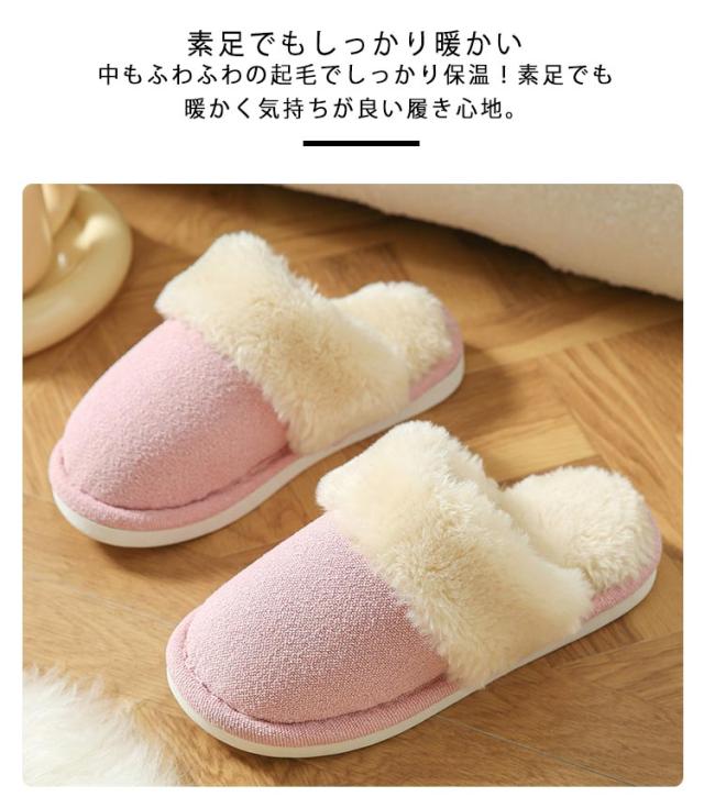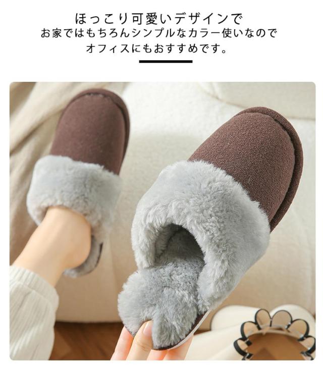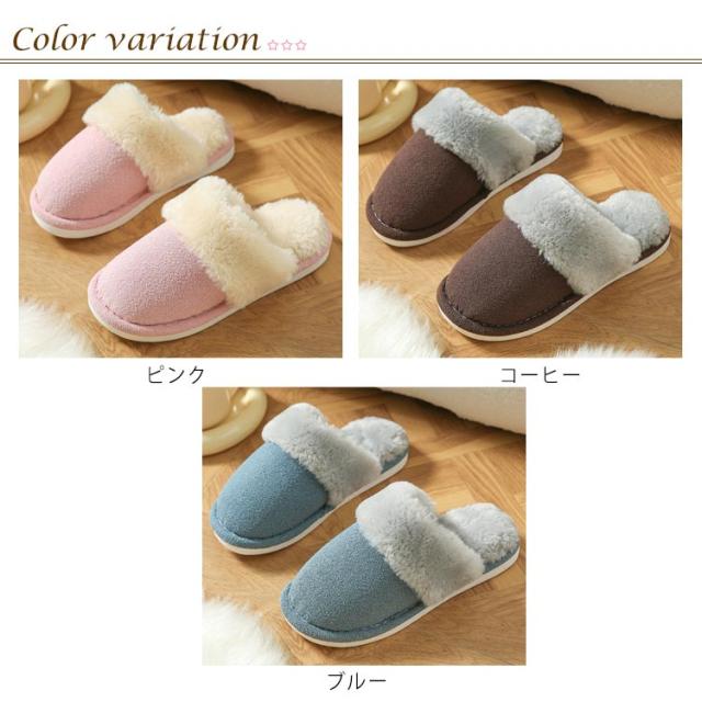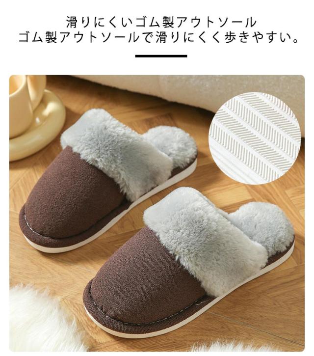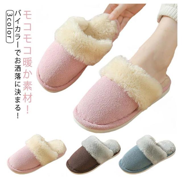 | モコモコ暖か素材!バイカラーでお洒落に決まる! レディース メンズ スリッパ ふわふわで暖かいルームシューズ。 ほっこり可愛いデザインでお家ではもちろん シンプルなカラー使いなのでオフィスにもおすすめです。 素足でもしっかり暖かい 中もふわふわの起毛でしっかり保温! 素足でも暖かく気持ちが良い履き心地。 さっと履きやすい かかとが無いので脱ぎ履きが楽々。 滑りにくいゴム製アウトソール ゴム製アウトソールで滑りにくく歩きやすい。 | |