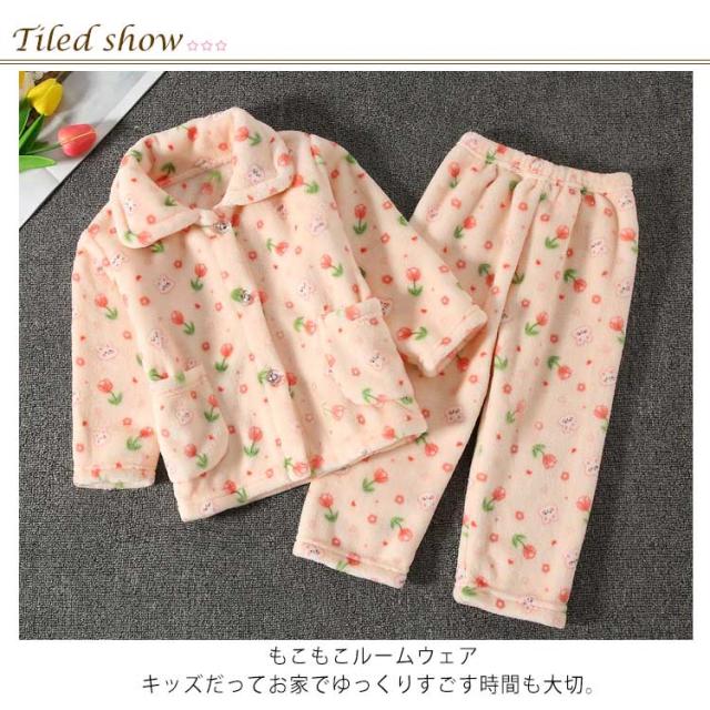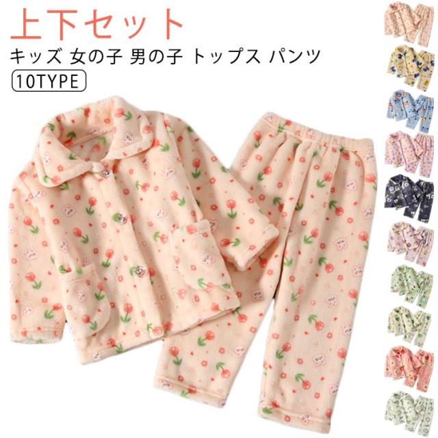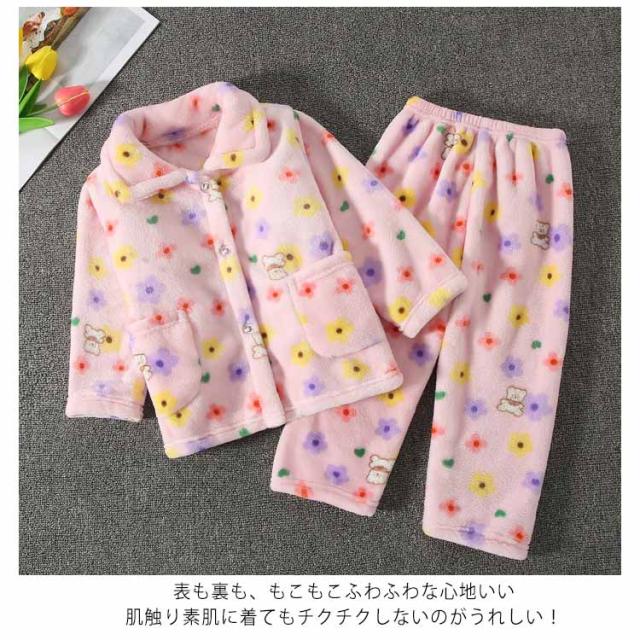 もこもこ キッズ ルームウェア 男の子 女の子 秋 上下セット もこもこ ルームパンツ ポケット付き 冬 あったか ズボン 部屋着 ふわふわ 前開き 子供 ジュニア 防寒 長袖 寝間着 女児 無地 秋冬
