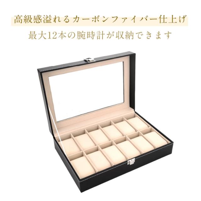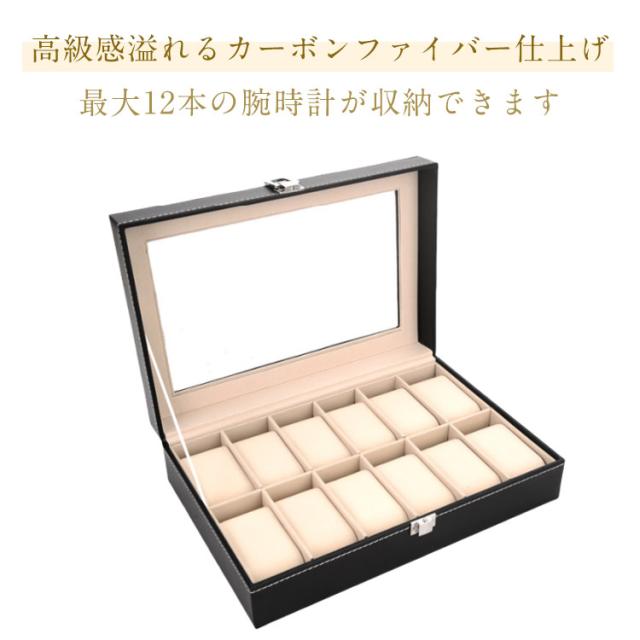 | 腕時計ケース 高級感溢れるカーボンファイバー仕上げ 最大12本の腕時計が収納できます クッションを取り外すことで、指輪やネックレスなどの小物入れとしても活用可能 腕時計をきれいに見せるガラス天板 | |