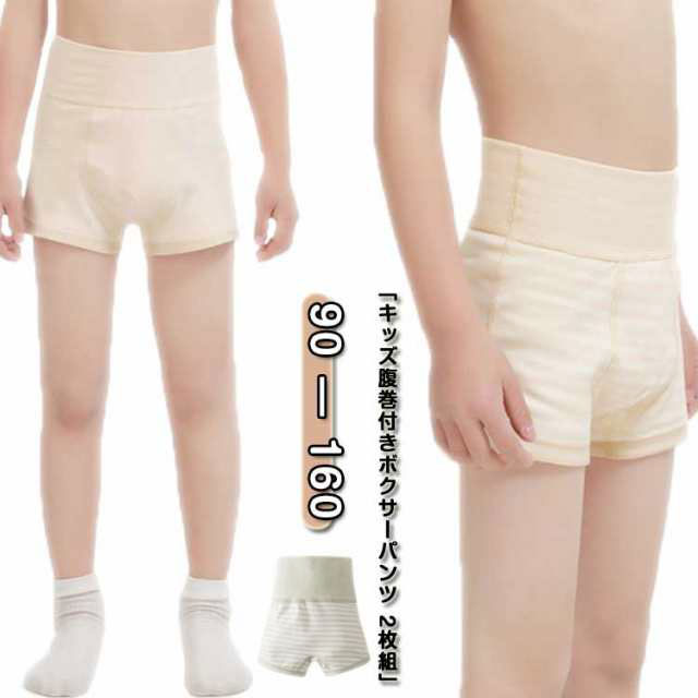 2枚組 キッズ 腹巻付き ボクサーパンツ あったか お腹すっぽり ハイウエスト ロングボクサー 綿 女の子 男の子 腹巻パンツ 冷え対策 温活 子供 こども コットン 腹巻き 下着 インナー 保育園 幼稚園 小学生 入園 入学 90 100 110 120 130 140 150 160 送料無料