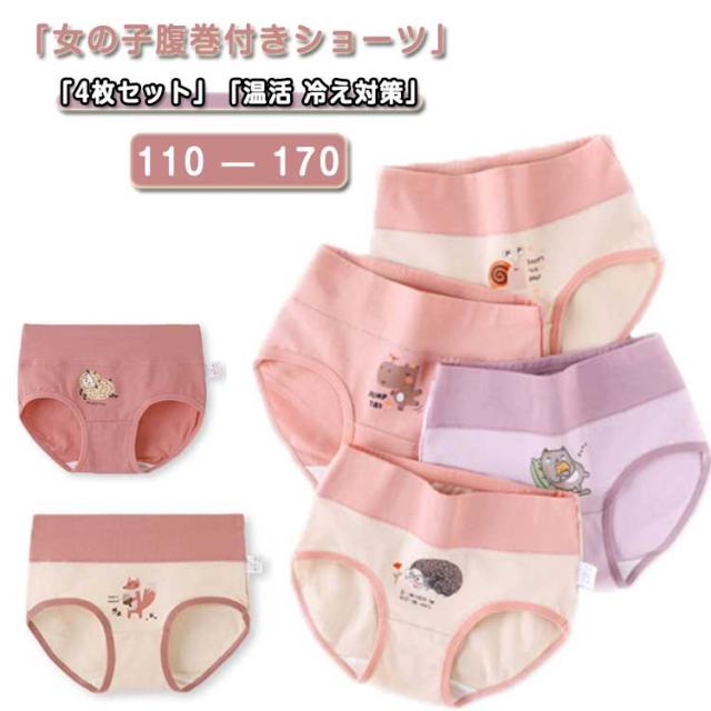 送料無料 4枚セット 女の子 腹巻ショーツ 綿 冷え対策 温活 女児ショーツ インナー 子供 腹巻パンツ 下着 ガールズ キッズ 腹巻付き 下着 肌着 ストレッチ ジュニア 通園 保育園 幼稚園 小学生 入園 入学 110 120 130 140 150 160 170 送料無料
