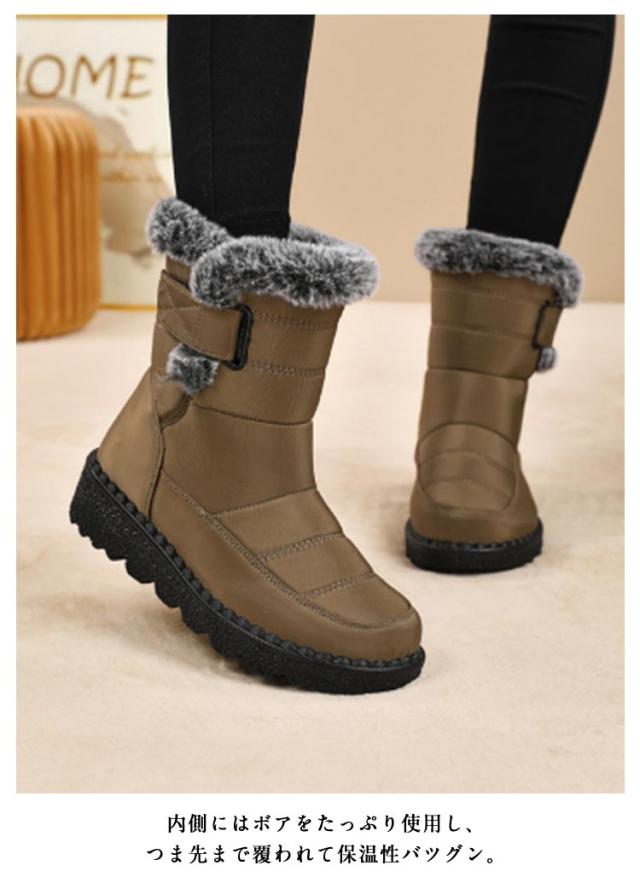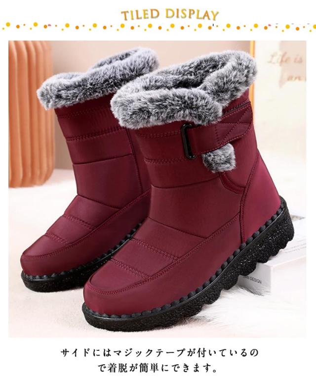 スノーブーツ ファー付き おしゃれ レディース ダウンブーツ エコダウン 厚底 裏起毛 ボア ブーツ ウインターブーツ ショートブーツ スノーシューズ ハイカットブーツ 撥水 滑らない 防寒靴 雪靴 ボアブーツ 軽量 あったか 防寒 防滑 アウトドア マジックテープ 【送無】