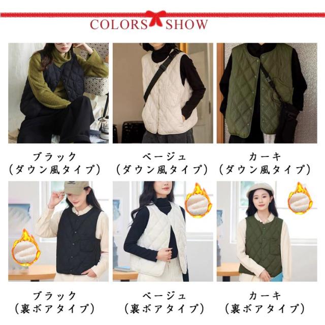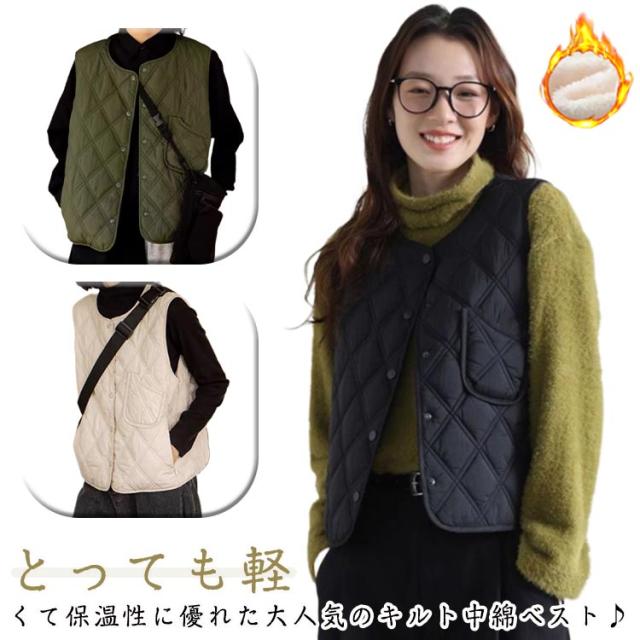 裏起毛 ボアベスト インナーベスト 中綿ベスト キルティング 前開き ライトベスト 軽量 秋冬 ベストアウター 裏起毛 防風 インナーダウン もこもこ 保温 フェイクダウンベスト おしゃれ 防寒ベスト vネック チョッキ 暖かい 婦人