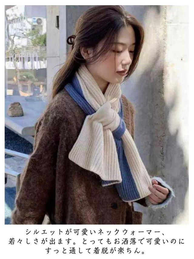 ストール 通勤 ミニ メンズ マフラー 差し込み レディース ニットマフラー ミニマフラー ティペット 簡単 リボン 大人 バイカラー ネックウォーマー クロス ミセス 通すだけ ネックウォーマー バイカラー 通学 防寒