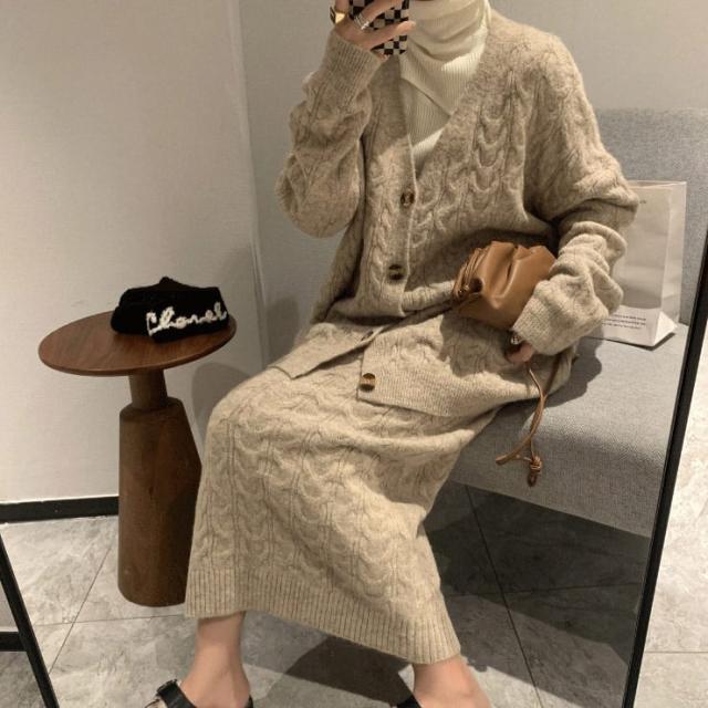 ニット セットアップ レディース セータートップス スカート カーディガン 長袖 セット ツーピース pLegLad店 ケーブル 個性的 ゆったり 大人 おしゃれ きれいめ 秋冬