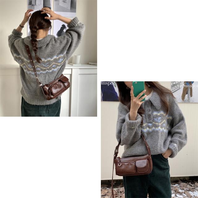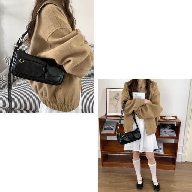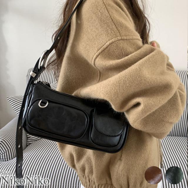 全品送料無料一部除く ダブルポケット ベルトショルダー ワンハンドルバッグ【即納】レトロ 鞄 カバン かばん バッグ 斜め掛けバッグ ミニバッグ 横長バッグ 小さめ 合成皮革 ダブルポケット レディース 韓国 Y2Kファッション 韓国ストリート 流行り トレンド かわいい