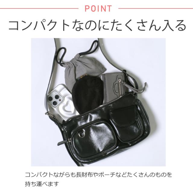 太めなベルトショルダーとダブルポケットが