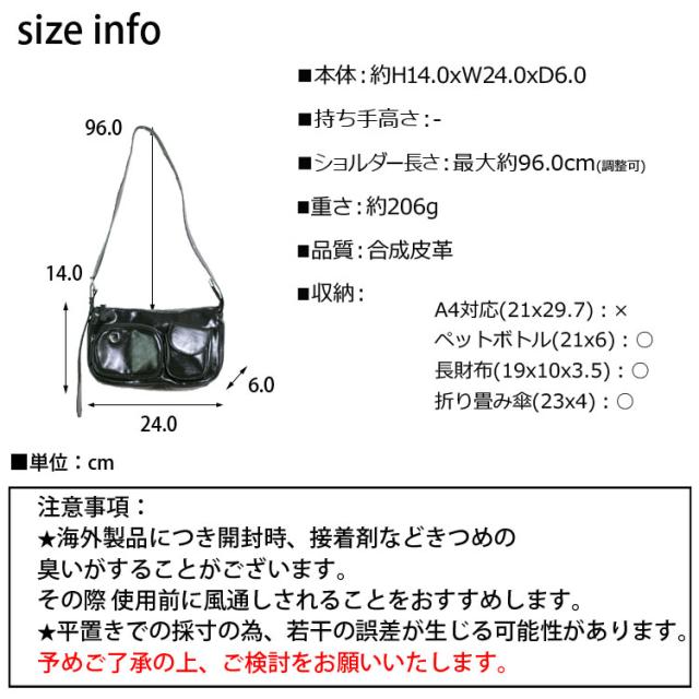 縦:約14cm 幅:約24cm マチ:約6cm ショルダー長さ:最大約96cm(調整可)