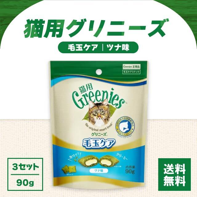 グリニーズ 猫 毛玉ケア スナック ツナ味 90g 3袋セット 食物繊維 セルロース 健康 ビタミン ミネラル 猫 猫用 キャット ネコ ねこ 猫ちゃん お魚 おやつ 喜ぶ カリカリ クリーミー 自然素材 総合栄養食 自然 由来 greenies