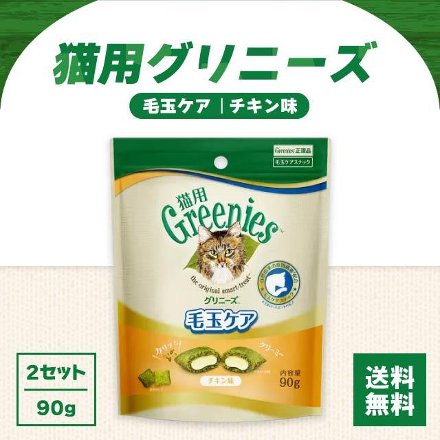 グリニーズ 猫 毛玉ケア スナック チキン味 90g 2袋セット 食物繊維 セルロース 健康 ビタミン ミネラル 猫 猫用 キャット ネコ ねこ 猫ちゃん お魚 おやつ 喜ぶ カリカリ クリーミー 自然素材 総合栄養食 自然 由来 greenies