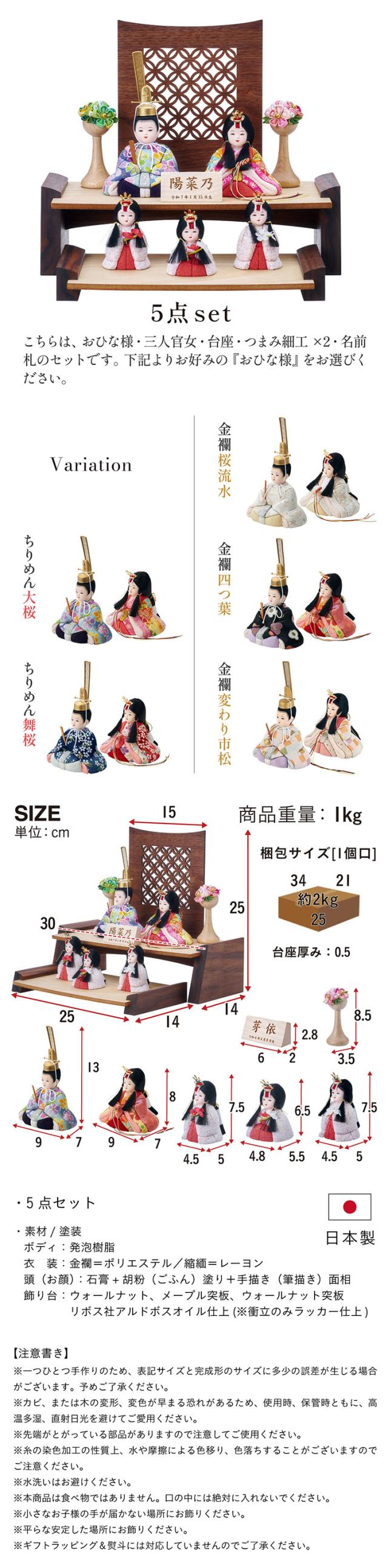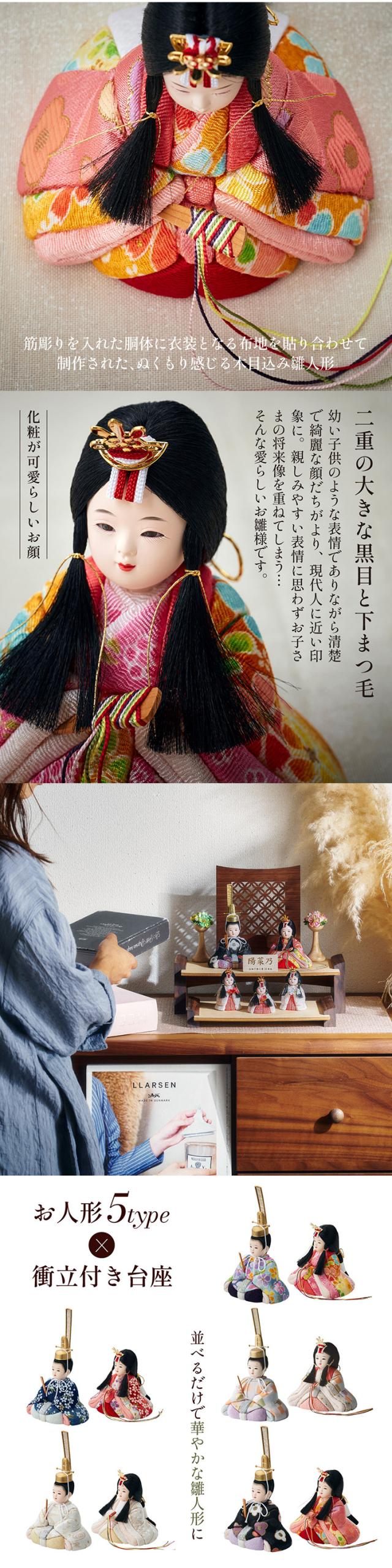 雛人形 木目込み 木製 コンパクト ひな人形 のどか 日本製 二段 おしゃれ オシャレ かわいい 可愛い 二段飾り 5点セット 5色対応 シンプル 桃の節句 インテリア ひな飾り ひな祭り 初節句 節句 木 玄関 女の子 お祝い 金襴 縮緬