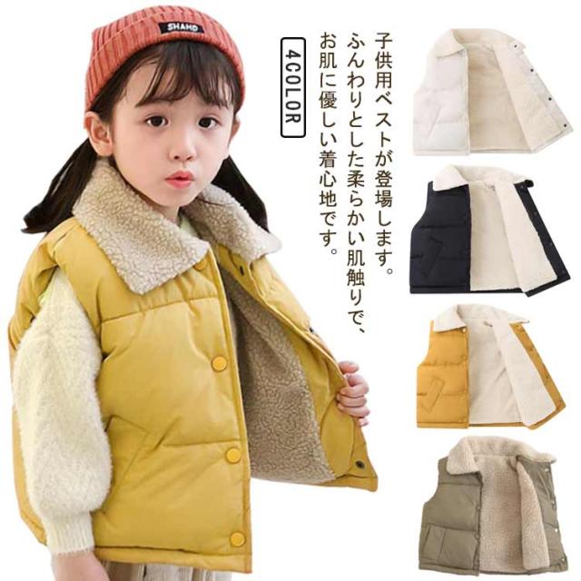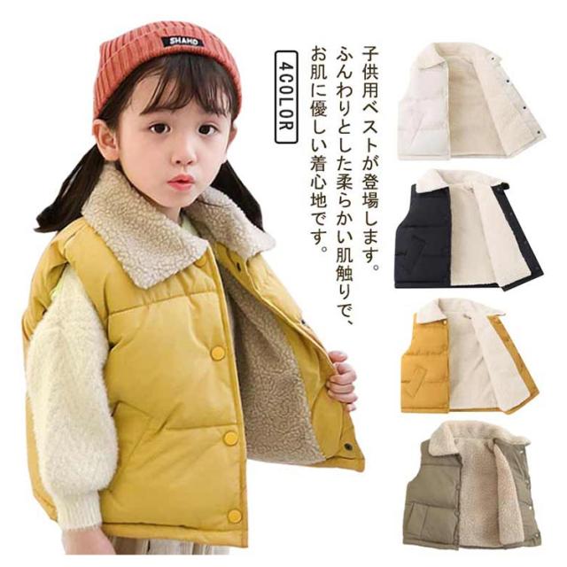 羽織り 中綿入れ キッズ 裏起毛 防寒コート 女の子 男の子 アウター ノースリーブ 子供服 ベスト 中綿入れ 前開き フェイクダウンベスト ベビー ベスト 綿 厚手 幼稚園