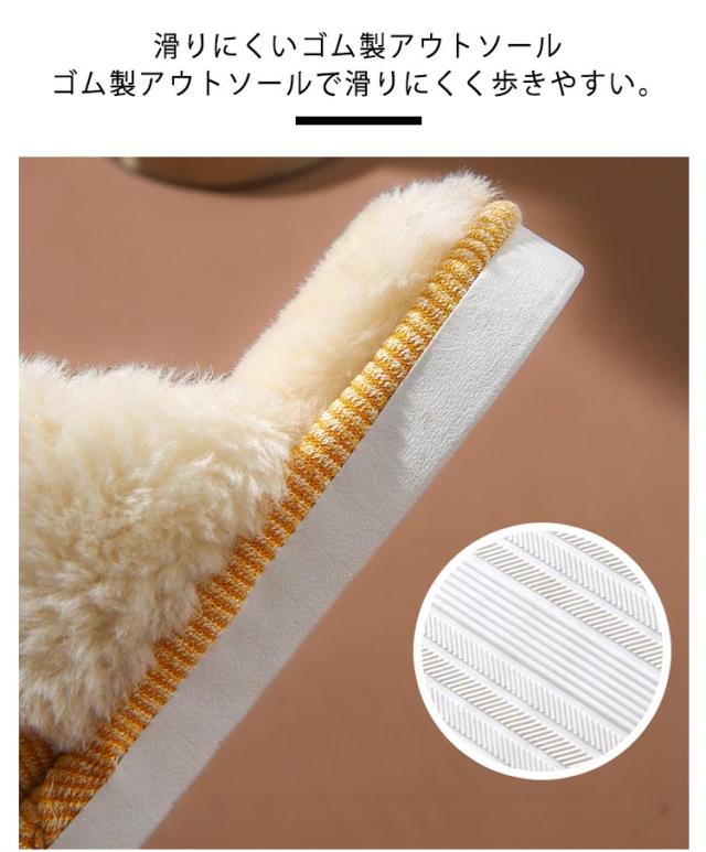 | モコモコ暖か素材!バイカラーでお洒落に決まる! レディース メンズ スリッパ ふわふわで暖かいルームシューズ。 ほっこり可愛いデザインでお家ではもちろん シンプルなカラー使いなのでオフィスにもおすすめです。 素足でもしっかり暖かい 中もふわふわの起毛でしっかり保温! 素足でも暖かく気持ちが良い履き心地。 さっと履きやすい かかとが無いので脱ぎ履きが楽々。 滑りにくいゴム製アウトソール ゴム製アウトソールで滑りにくく歩きやすい。 | |