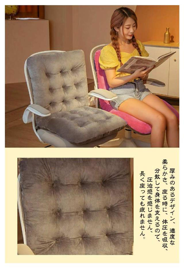 | 座っているときもあったかい、ふわふわあったかチェアクッション。 【サポート】 厚みのあるデザイン、適度な柔らかさ、座る時に、体圧を吸収、分散して身体を支えるので、圧迫感を感じません、長く座っても疲れません。 ? 【大活躍】 来客時にも使えるフロアクッションです、シンプルな無地柄、インテリアのアクセントとして、素敵なリビングを作り上げてみます。 ? 【使い方多様】 ごろ寝にぴったりな長座布団。 横になりたい時ふんわりしっかりと体を支えてくれます。 寝転がっても座っても快適な弾力。 ? 【適用場所】 家庭での使用に適しており、特に和風の模様で和室での使用に非常に適しています。 車やオフィスの椅子にも使用できます。 ご両親やお友達へのプレゼントにもおすすめです。 ? ■触り心地はとてもよく、ふわふわで癒される。 ■中材にはポリエステルEPEをぎっしり詰め込み、たっぷりボリュームを実現します。 ■お尻にかかる負担を軽減し、長く座っても疲れません! ■ダイニングチェアや、在宅ワーク用にお使いの椅子などに取り付けることで、おうち時間に最適。 ■椅子用はもちろん、ベンチ用の長座布団としても使用できます。 ■抜群のクッション性と快適な肌触りが、お部屋に彩りを加えます。 | |