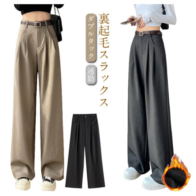裏起毛 裏起毛 レディース ボトムス スラックス きれいめ ワイドパンツ 冬 ダブルタック あったか スラックス 春 ゆったり 厚手 防寒 夏 ロングパンツ ボトムス 秋 体型カバー ハイウエスト オフィスカジュアル 低身長 高身長 大きいサイズ