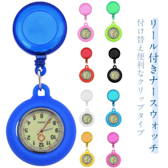 | リール付きナースウォッチ 付け替え便利なクリップタイプ 時間の確認がしやすいリール伸縮70cm | |